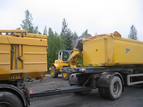 Maanrakennusurakka vaatii erillään olevien ihmisten, koneiden ja maa-ainesvarastojen yhdistämisen tehokkaaksi tapahtumaketjuksi. VTT:n ja yritysten kokeilussa pyöräkuormaajien ja sora-autojen kuljettajat hakivat aamusta alkaen tietokannasta tiedot ko. päivänä heille sovituista projektin tehtävistä. Kuorman valmistuttua pyöräkuormaaja välitti tietokantaan tiedon kuhunkin ajoneuvoon kuormatusta tonnimäärästä sekä tehtävästä, johon se liittyy. Samalla tallentuu myös tieto pyöräkuormaajan tekemästä työstä. Lisäksi kokeilussa kerättiin tietoa kuorma-auton GPS-paikannustekniikalla ajomatkan pituudesta purkupaikalle. VTT ja Tieliikelaitos kokeilivat järjestelmää Seinäjoella. Laitoksen kehittämispäällikkö Pekka Suopajärvi sanoo, että järjestelmä helpottaa olennaisesti ajo- ja työjärjestelyjä, kun tilatut kuljettajat koneineen ilmoittautuvat aamuisin palvelukseen ja päivittävät jatkuvasti omia tapahtumiaan palvelimen tietokantaan. Pääurakoitsija seuraa omalta tietokoneeltaan reaaliajassa projektin eri tehtävien etenemistä ja materiaalivarastojen riittävyyttä. Suopajärvi lisää, että tällainen huipputeknologia auttaa työntekijöitä keskittymään ydintehtäväänsä, ja se parantaa myös tienrakennusalan kiinnostavuutta. Napapiirin Kuljetus Oy:n työpäällikkö Keijo Röytiö sanoo, että uusi järjestelmä ajojärjestelyissä parantaa myös toiminnan laatua, koska se vähentää nykyisiä osin virheellisiä tilaus-, laskutus- ja tilitystietoja. Samalla soravarastojen seuranta helpottuu, ja GPS-tekniikalla varmistetaan oikean soralajin kuormaaminen. Järjestelmän käyttökustannukset ovat pienet, ja tiedot pysyvät puskurissa, vaikka langattomassa siirrossa olisikin katkoksia. Järjestelmä on toteutettu nykyisin käytössä olevilla langattomilla perustekniikoilla. Palvelintietokoneeseen luotiin yhteys GPRS-moduuleilla varustetuilla ajoneuvotietokoneilla tai GPRS-puhelimilla, joissa toimivat java-ohjelmat. Mikäli tietyömaan urakoinnissa käytettävät koneet on varustettu ajoneuvotietokoneilla, niiden ominaisuuksia hyväksi käyttäen koko tietyömaan tietojärjestelmän jalostusastetta voidaan nostaa nykyisestä. Siten tietyömaan pääurakoitsijan ja sen aliurakoitsijoiden toiminnat tehostuisivat edelleen. Langattomaan tiedonvälitykseen perustuvan tietyömaan ohjausjärjestelmän kehittämiseen osallistuivat myös Ebsolut Oy, Kajaanin Puhelinosuuskunta, Sunit Oy ja Tamtron Oy. Lisätietoja: